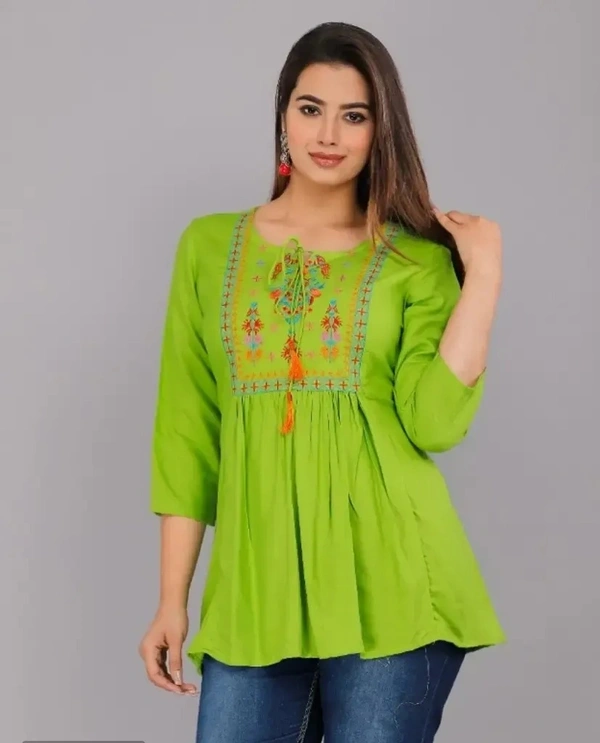 Classic Rayon Embroidered Tops for Womens