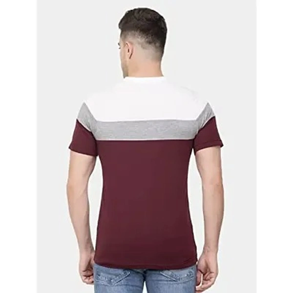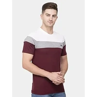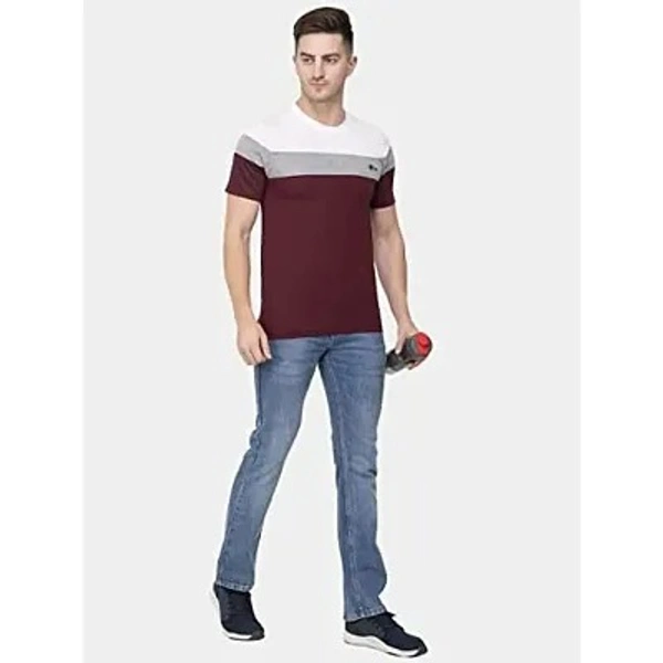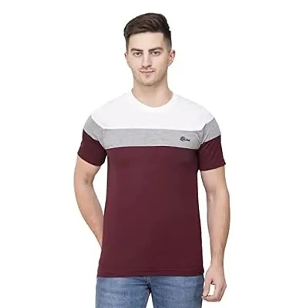 Ekom Cotton Blend T-Shirt for Men & Boys | Half Sleeve Color Block Tshirt-Wine