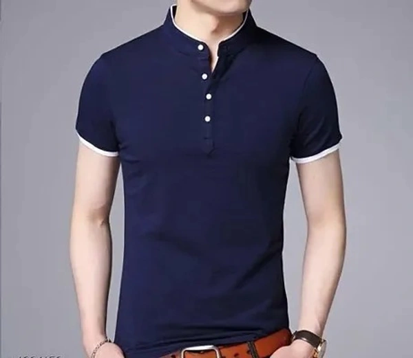 Men's Trendy Solid Cotton Mandarin Tees