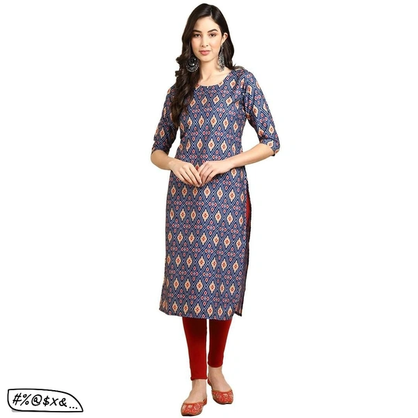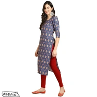 Stylish Blue Crepe Ethnic Motif Straight Kurta For Women