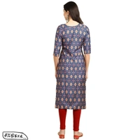 Material:100% American Crepe || Pattern: Ethnic Motif || Color:Blue|| Type: Straight Kurti