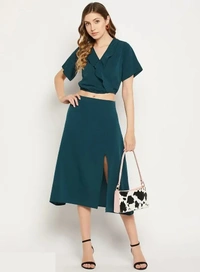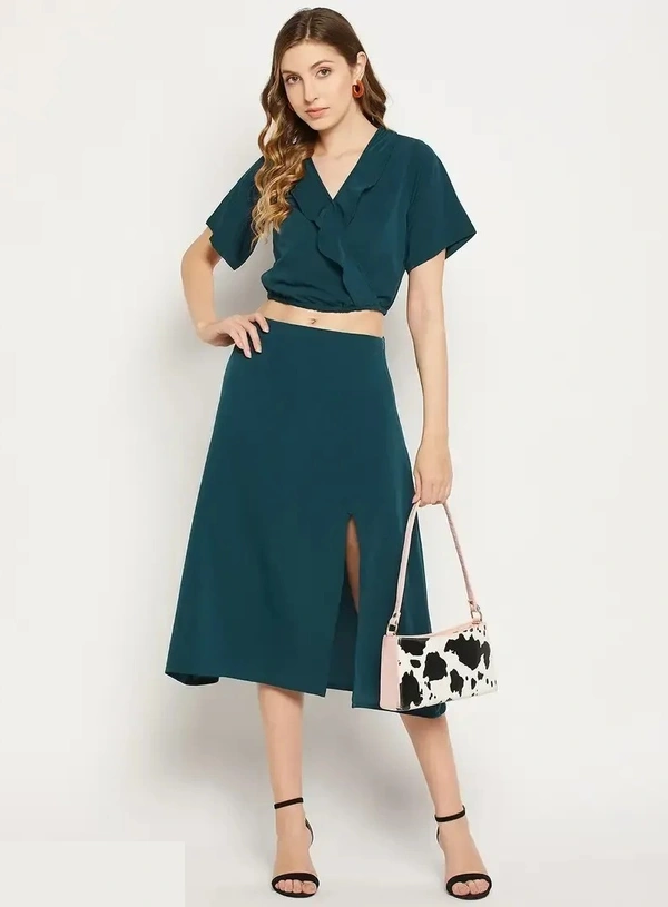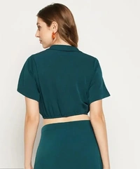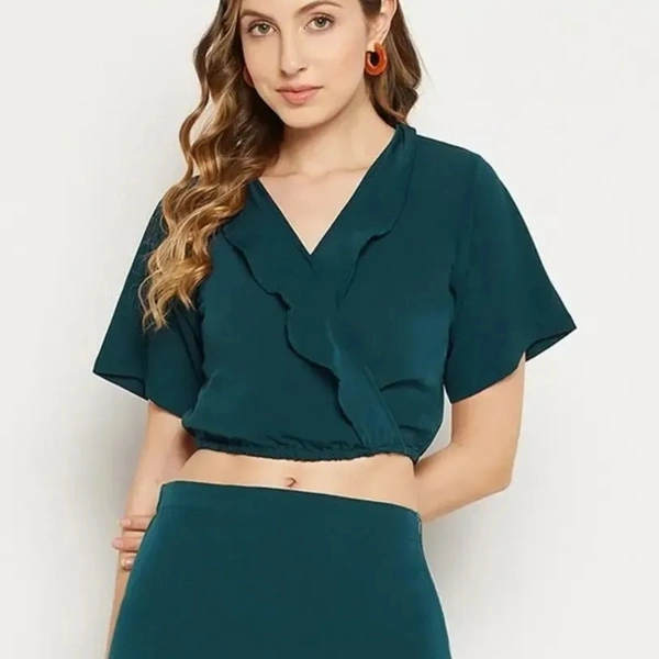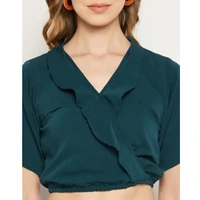 Stylish Fancy Crepe Solid Bell Sleeves Crop Top Crop Length For Women