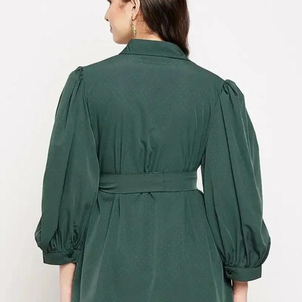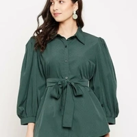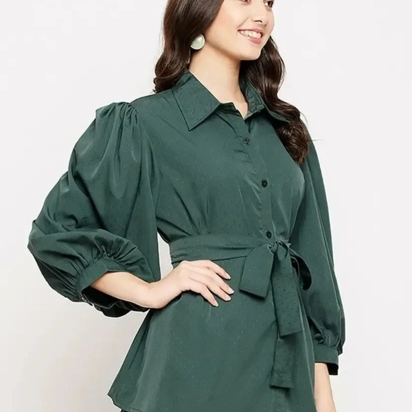 Solid Crepe Shirt with tie-up Waist Belt & Puff Sleeves