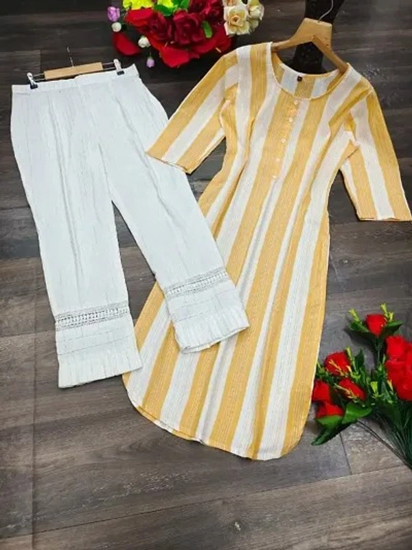 Fancy Cotton Kurti With Chikankari Pant , Kurti Fabric : - Cotton , Size :- M L XL XXL , Kurti Length ;- 42+ , Pant Fabric :- Cotton , Pant Length :- 40+ , Work :- Printed Top with Chikankari Pant