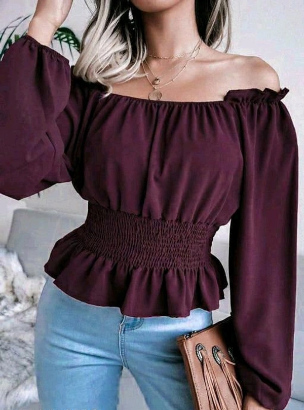 Trendy Fashionable Women Off-shoulder Tops & Tunics Puff Sleeves CROP Top