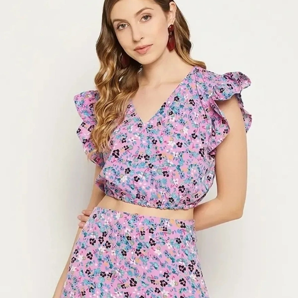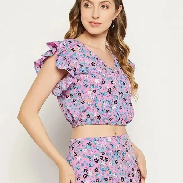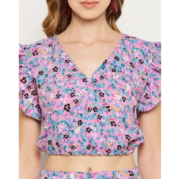 tylish Fancy Crepe Printed Bell Sleeves Crop Top Crop Length For Women